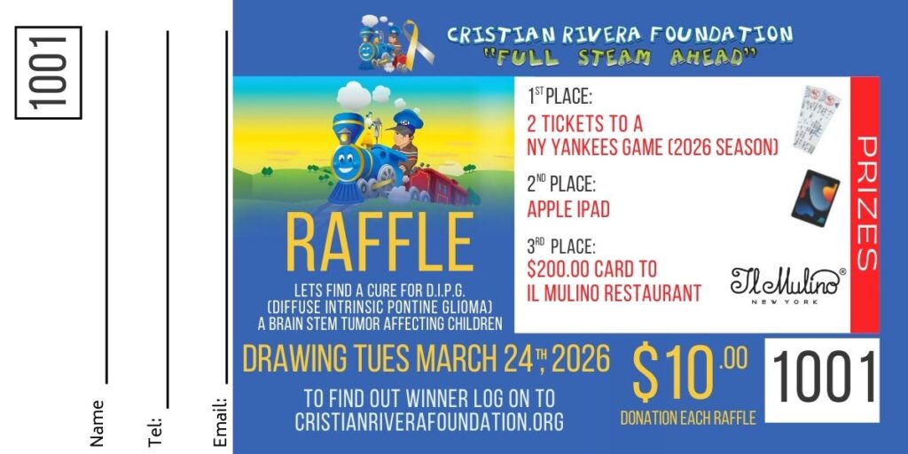 Raffles are available to purchase from now until Tues, March 24th, 2026, at 5 pm. The drawing will take place on Tues, March 24th, 2026, and winners will be posted on CristianRiveraFoundation.org after 8 pm.