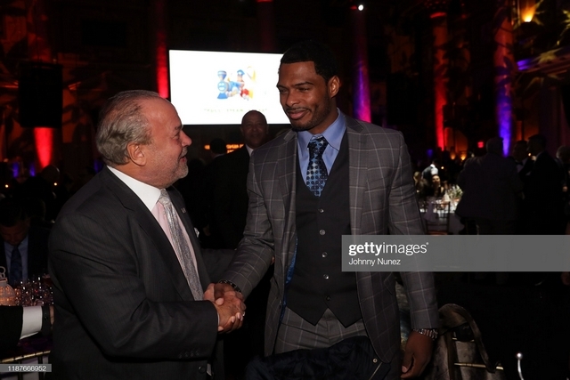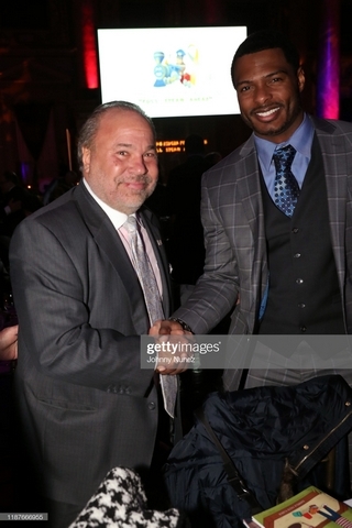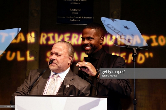 NEW YORK, NEW YORK – NOVEMBER 13: Bo Dietl (L) and AJ Calloway speak onstage at the 11th Annual Cristian Rivera Foundation Celebrity Gala on November 13, 2019 in New York City. (Photo by Johnny Nunez/WireImage)